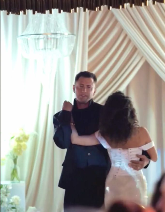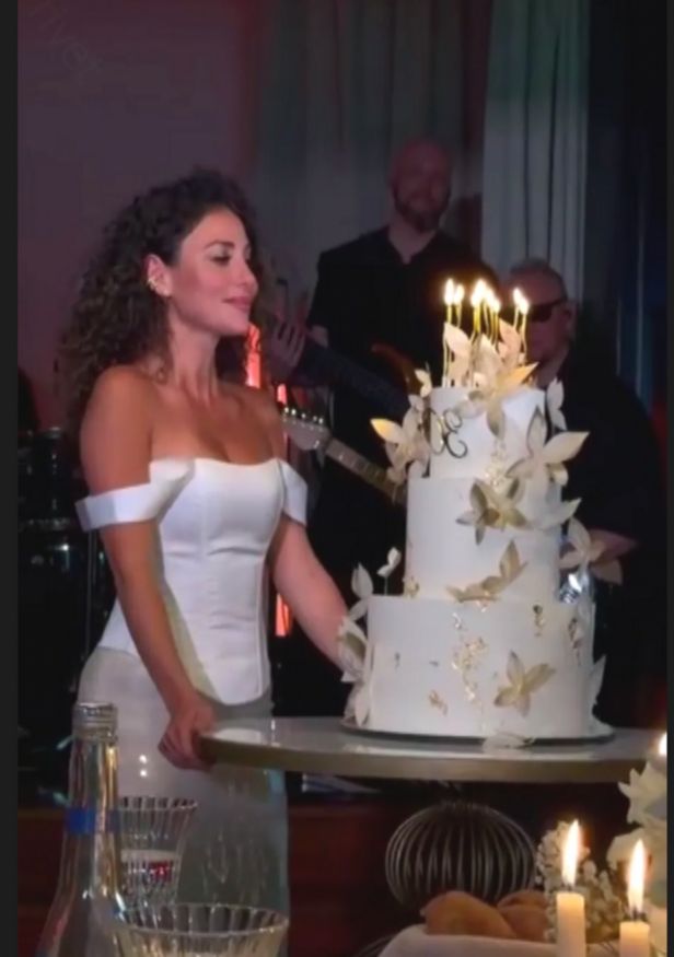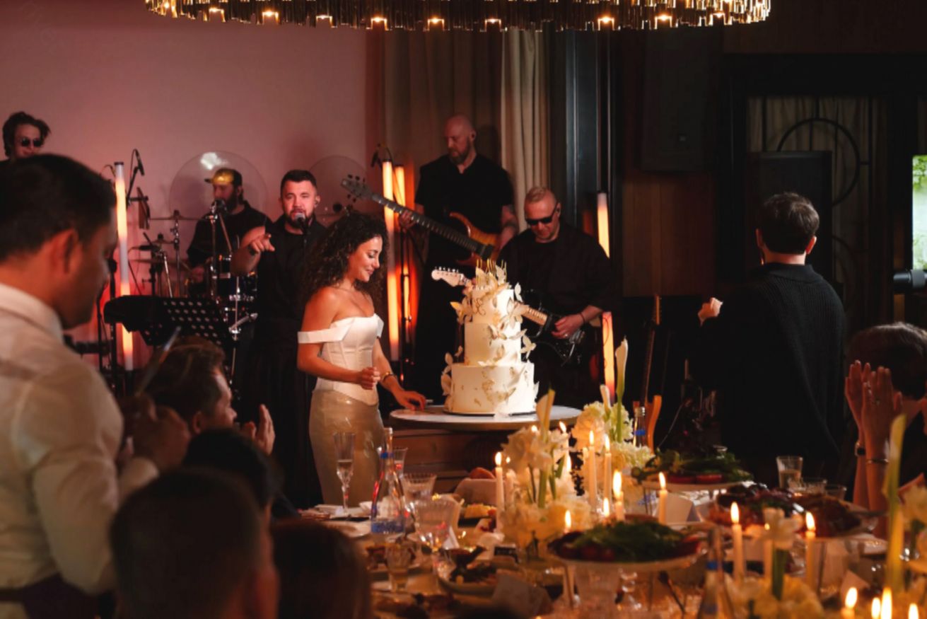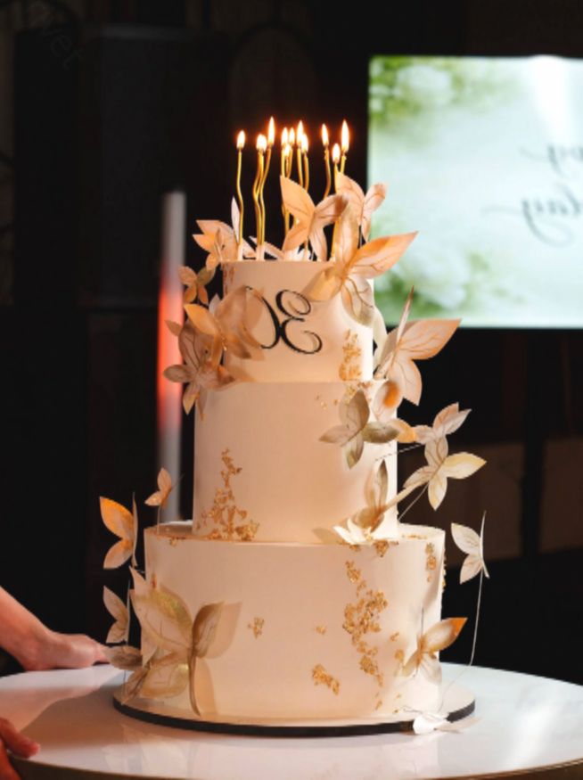 Кульминацией вечера стал трехъярусный торт — настоящий свадебный шедевр. Его вывезли под аплодисменты гостей, и этот момент окончательно стер границу между днем рождения и свадебным торжеством.