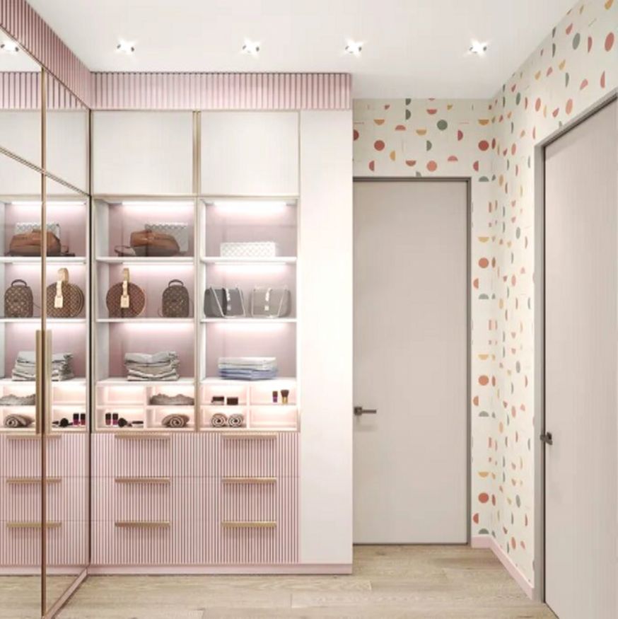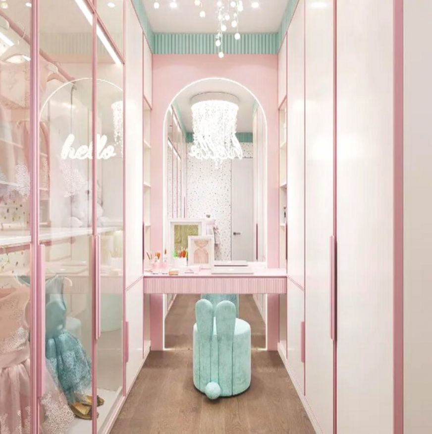 Пространство было продумано до мелочей и включало в себя множество систем хранения, чтобы все вещи юной модницы были аккуратно разложены и всегда под рукой.