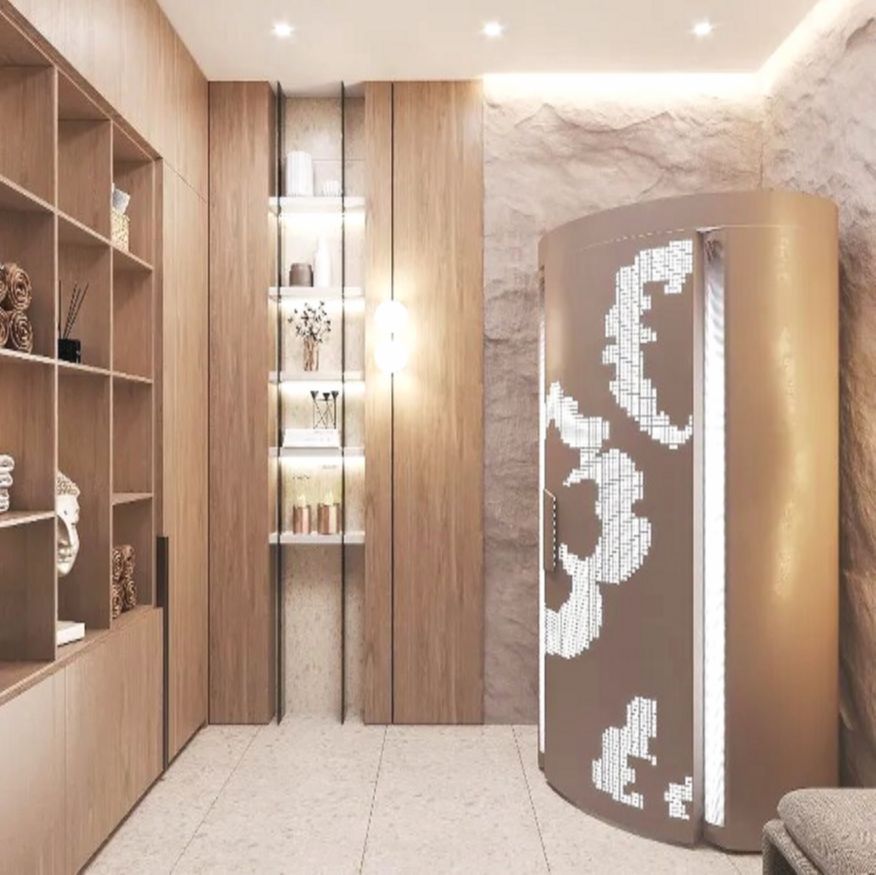 Не забыли создатели дома и о потребности в личном пространстве для Валерии. Для нее в доме была обустроена специальная спа-зона, выдержанная в коричневой гамме с использованием натуральных материалов.