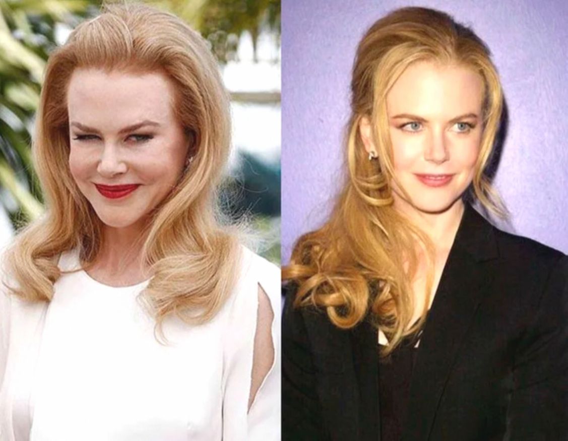 Тем не менее, время от времени Кидман появляется на публике с припухшим лицом — вероятно, результат очередных «укольчиков красоты». Отечность делает черты менее выразительными, глаза кажутся меньше, а мимика — почти неподвижной.