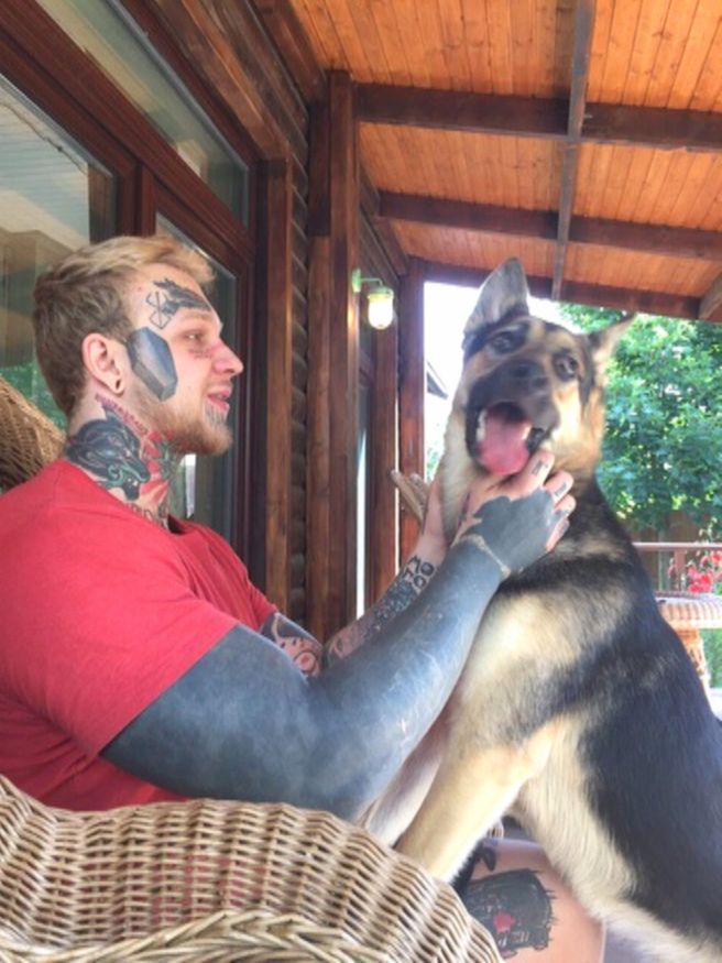 В 17 лет Денис сделал первую татуировку. В память о любимой собаке, которая ушла из жизни. Сейчас, спустя 16 лет, татуировки покрывают около 70% его тела. Особенно шокируют рисунки на лице: например, гроб на щеке — так он перекрывал старую татуировку.