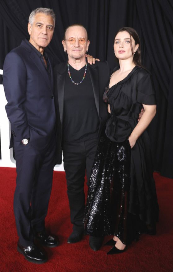 Премьеру посетила Ив Хьюсон, сыгравшая в фильме первую жену персонажа Клуни. 34-летняя ирландская актриса предстала в откровенном прозрачном бюстгальтере с цветочным принтом, который сочетался с юбкой с пайетками и завышенной талией и черным жакетом с рюшами. На ковровой дорожке она позировала с отцом – 65-летним фронтменом рок-группы U2 Боно (Пол Дэвид Хьюсон). Культовый музыкант с гордостью смотрел на дочь, обнимая ее на фотоколе.