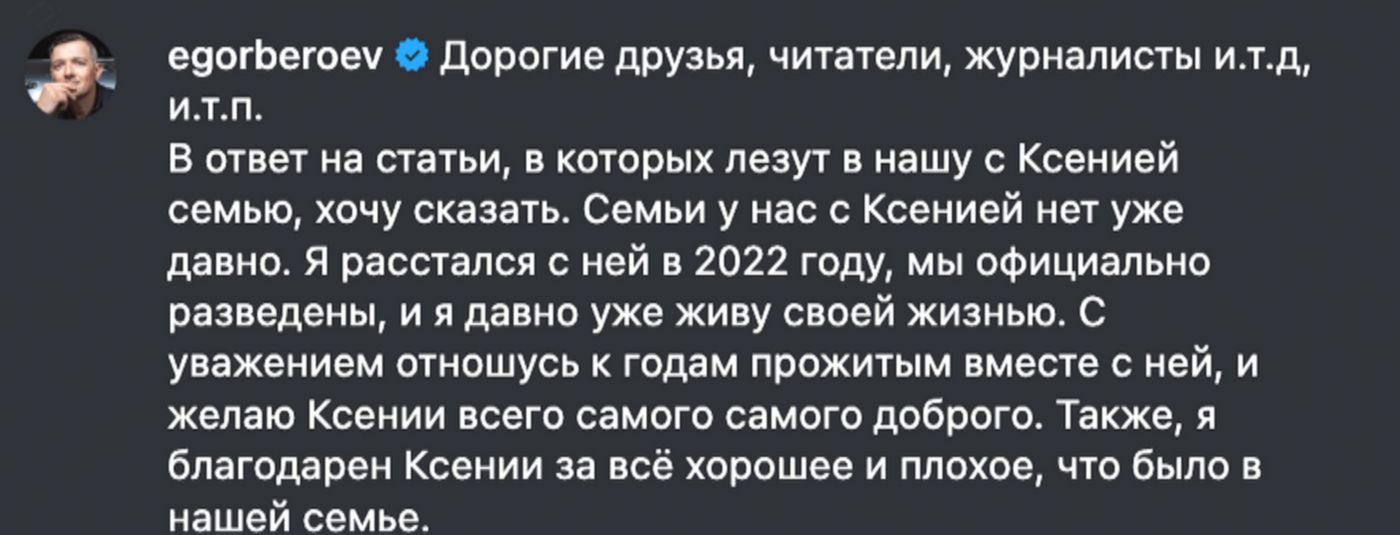 Егор Бероев, вот так комментирует развод: