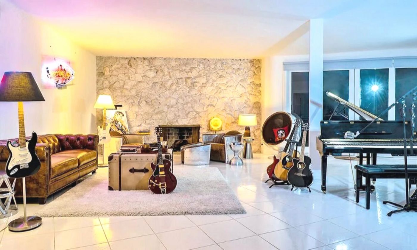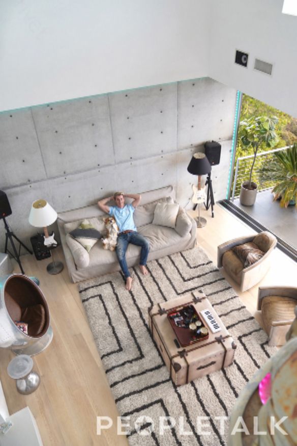 Что касается самого дома, он полностью отражает характер хозяина. Интерьер сдержанный, без лишнего декора: светлые стены, большие окна, сочетание бетона и дерева, открытое пространство. Есть отдельная комната, оборудованная под студию — там он пишет музыку.