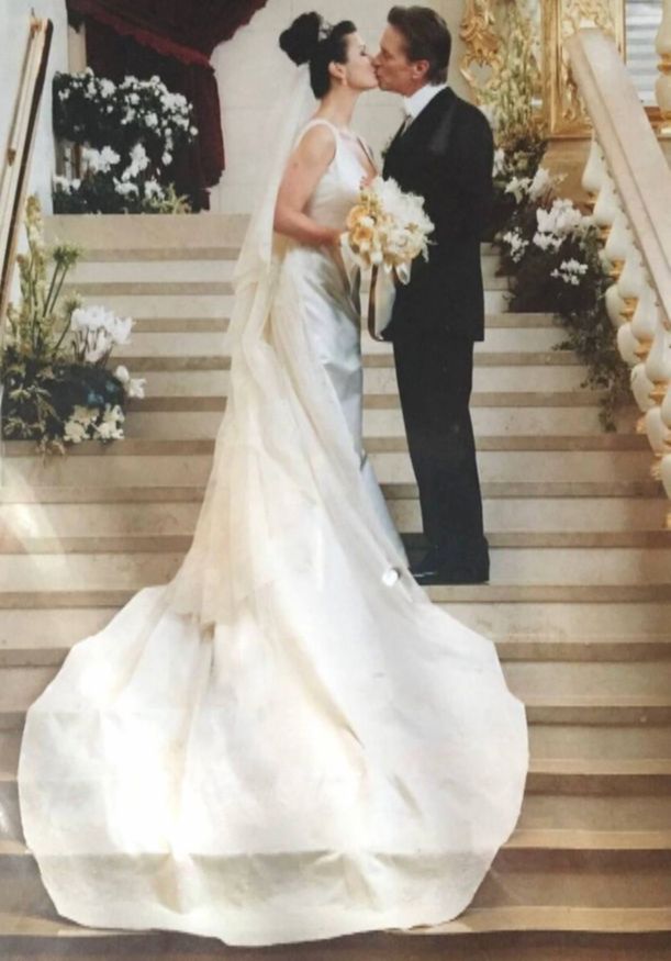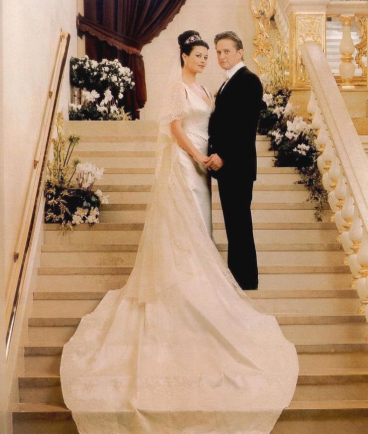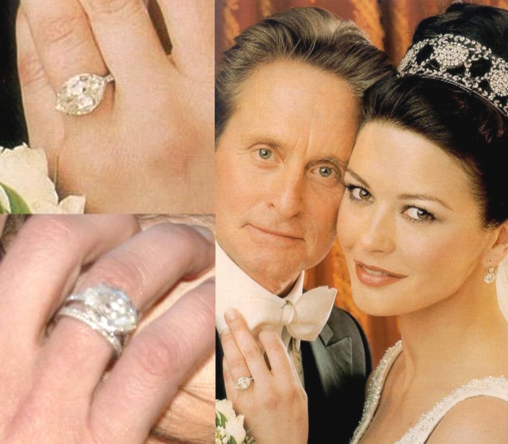 Дуглас сделал предложение любимой на стыке тысячелетий. Он надел ей на безымянный палец кольцо с 10-каратным бриллиантом огранки «маркиза». Главный камень обрамляло 28 бриллиантов поменьше, а стоимость украшения эксперты оценили в миллион долларов.
