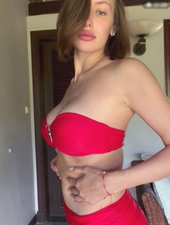 Возлюбленная Тимати примерила яркий летний наряд – она надела топ-бюстье и юбку мини красного цвета. Из украшений она выбрала лаконичные серьги и несколько браслетов. Валентина продемонстрировала естественную красоту, отказавшись от густого макияжа. Волосы, подстриженные под боб, обрамляли лицо. Иванова показала фигуру в разных ракурсах.