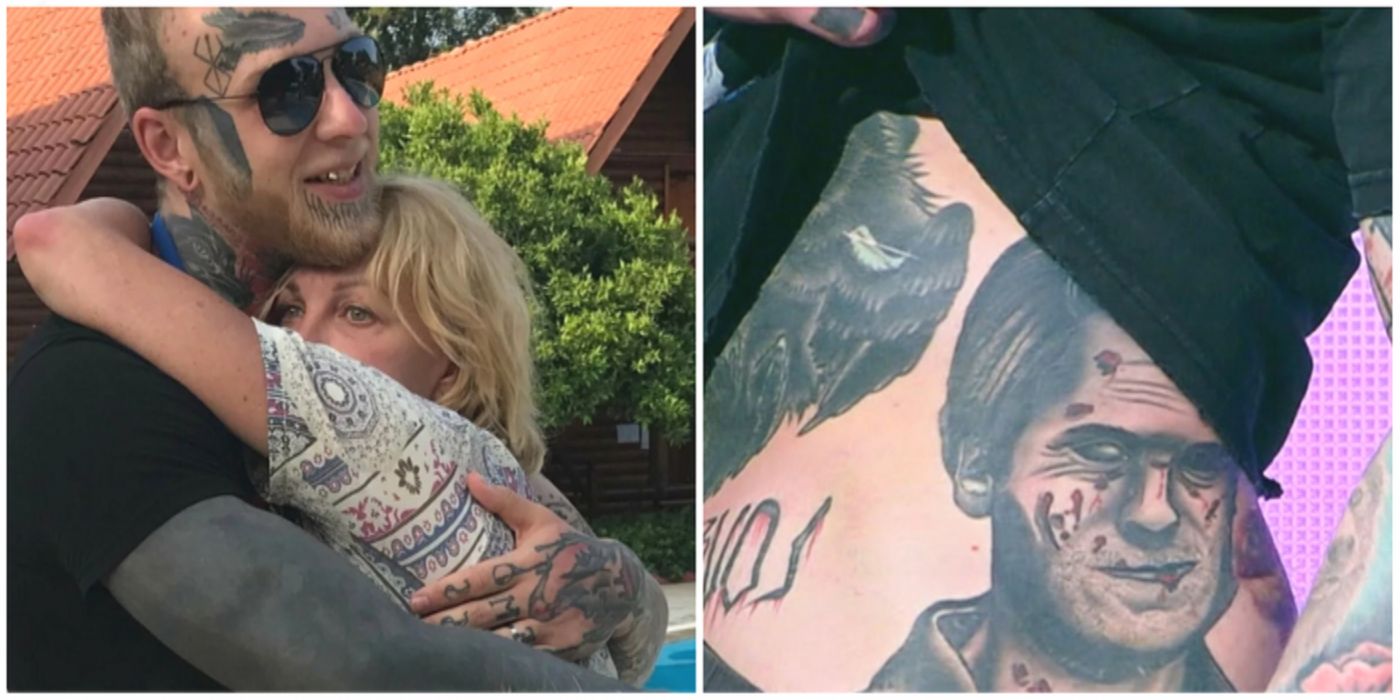 Даже на щеке гроб набил, что закрыл полученный на тренировке шрам. А на бедрах — изображения американских серийных убийц Теда Банди и Джеффри Дамера. Сии татухи с маньяками очень маму Елену напрягали. Хотя сама актриса парировала: