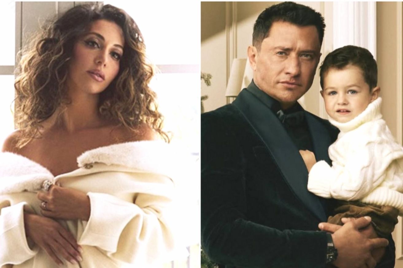 На одном снимке артист стоял и прямо смотрел в объектив. При этом он держал на руках двухлетнего сына. На втором фото Прилучный сидел в кресле, а Микаэль стоял рядом с ним. Они с улыбками смотрели в глаза друг другу.