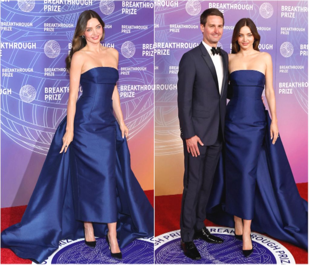 Ещё один ангел Виктории Сикрет Миранда Керр тоже пришла с супругом Эваном Шпигелем. Глубокий синий цвет платья плюс узкая юбка и пышный шлейф сделала модель героиней вечера.