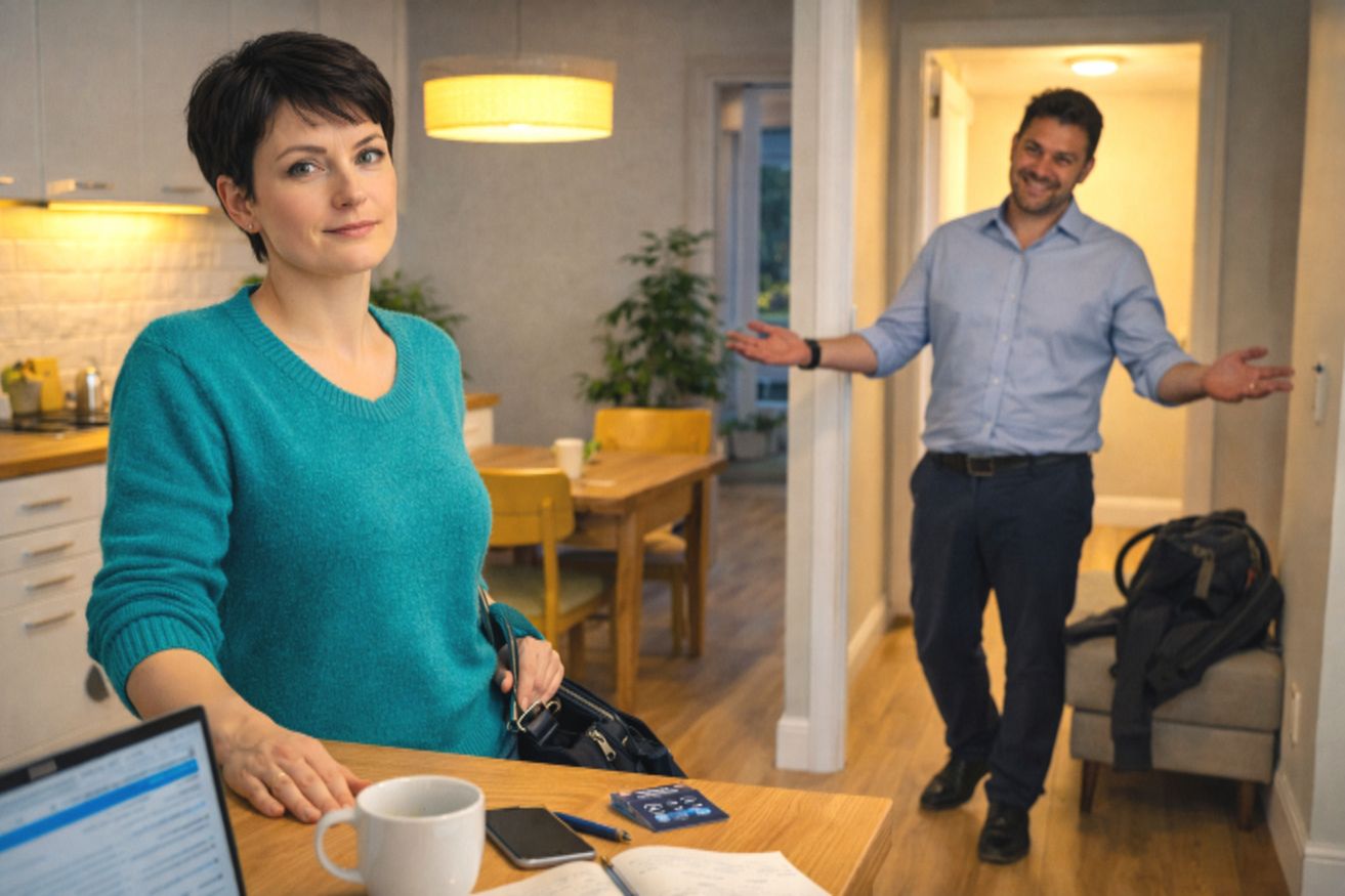 Олег вошёл в квартиру с довольной улыбкой и театральным поклоном, словно ожидал овации. Он бросил сумку на диван и направился на кухню, даже не переодевшись.
