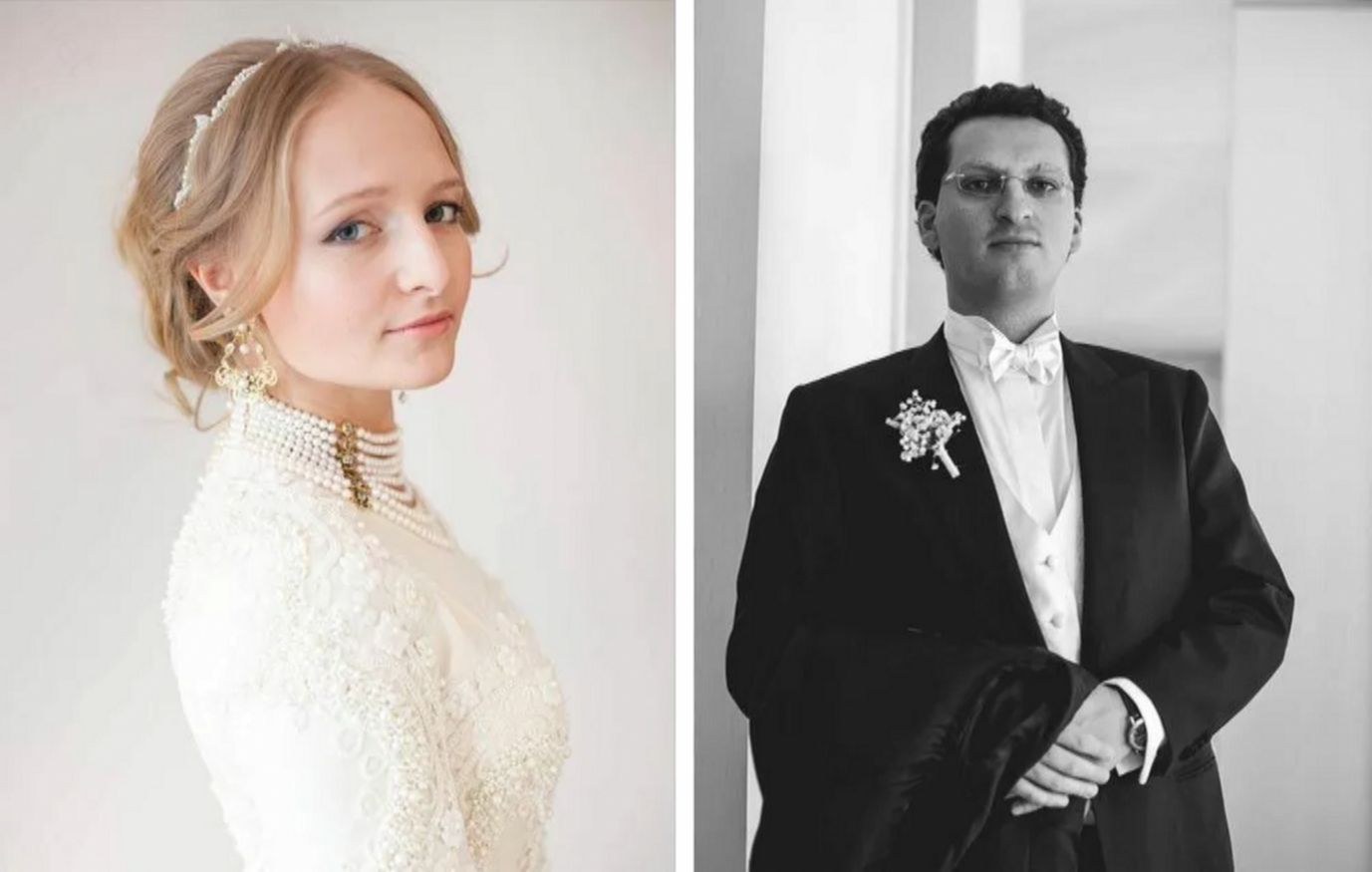 Невеста блистала на церемонии в длинном платье, украшенном жемчугом. Жених появился в классическом костюме с бабочкой, темном пальто. На праздник молодожёны прибыли на санях, запряженных тройкой чудесных белых лошадей. Повсюду дежурила вышколенная охрана. Медовый же месяц пара провела на далеком экзотическом острове Маврикий.