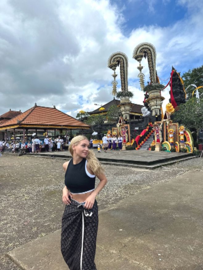 Актриса обнародовала новую серию снимков из путешествия, показав совместную прогулку с избранником по местным улочкам и достопримечательностям. Влюбленные передвигались по городу на байке, как большинство жителей Бали.