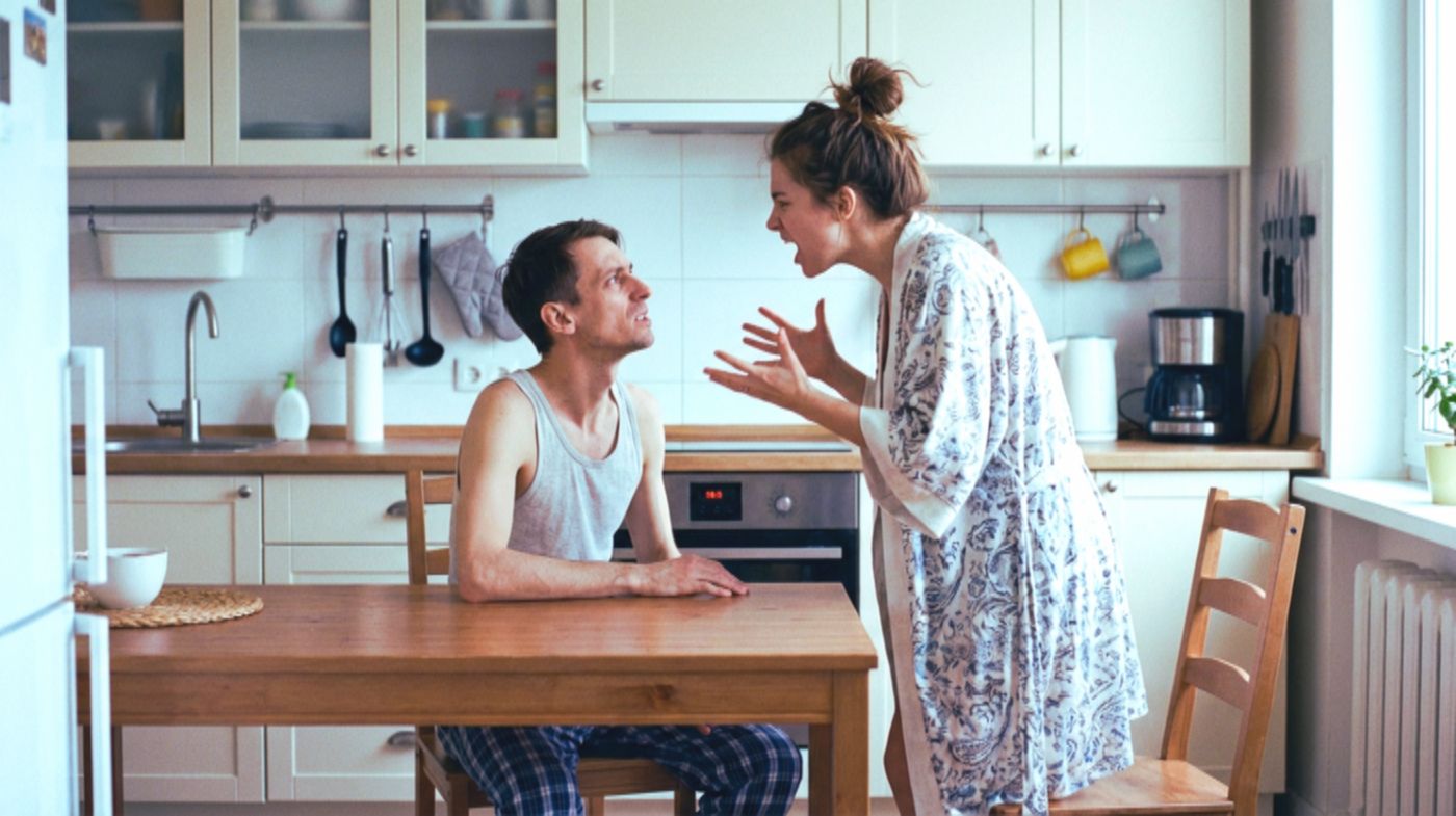 — Твоя мать припёрлась к нам в шесть утра, чтобы проверить, постирала ли я твои рубашки! И ты сказал ей спасибо за заботу?! Я нашла человека, который выставил бы её за дверь, а не меня! Я подаю на развод, мне надоело жить втроем в одной постели! И только попробуй меня ударить или кинуть в меня что-то, я сразу же сниму побои и подам не только заявление на развод, а ещё и посажу тебя! — кричала жена, прячась за столом.