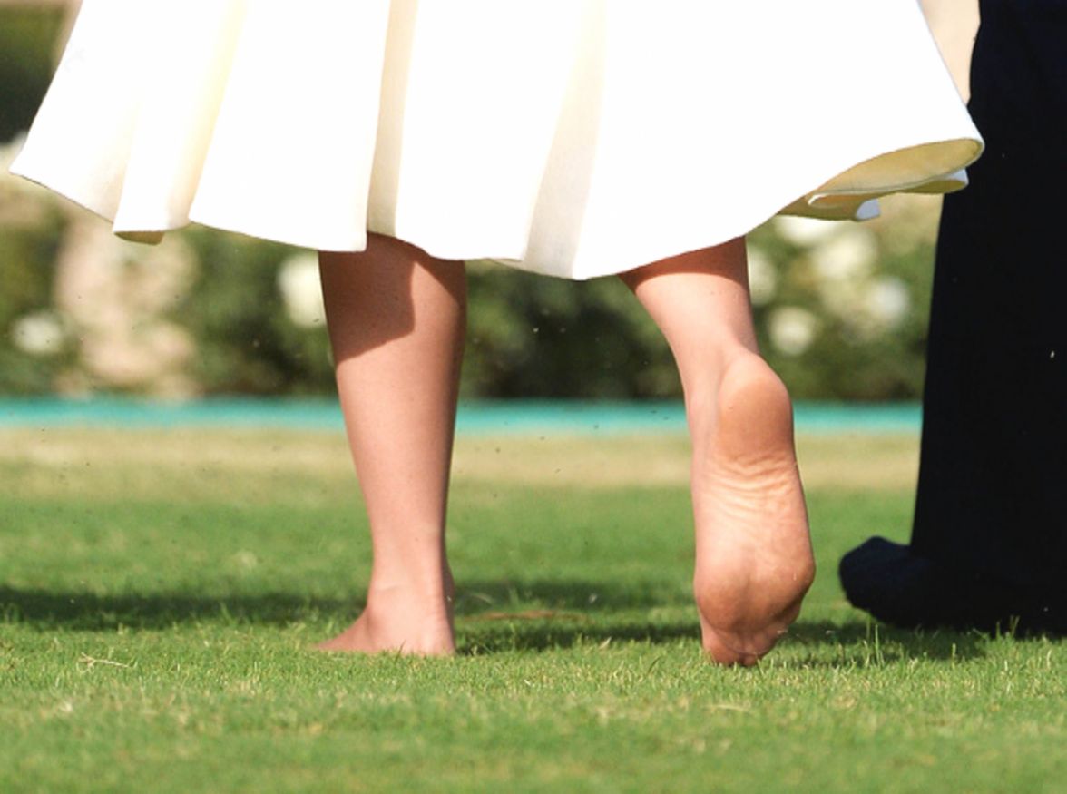 Во время визита в Индию и Бутан Кейт снова пришлось разуться. Несмотря на то, что на ней были тончайшие, практически невидимые колготки, зоркие операторы и «злые тетеньки» из интернета рассмотрели всё. Кейт лично (как говорят, без помощи стилистов!) паковала 15 нарядов для этого тура, но её помощники явно недоглядели за одной деталью — состоянием её педикюра и самих стоп. В жару +38 градусов принцесса бегала на каблуках, и результат был налицо: мозоли, покраснения и явные признаки плоскостопия.