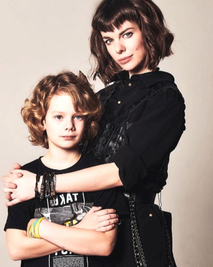 Актриса с улыбкой говорит, что гордится своим сыном — умным, добрым и всё более взрослым подростком, который растёт в любви и взаимопонимании.