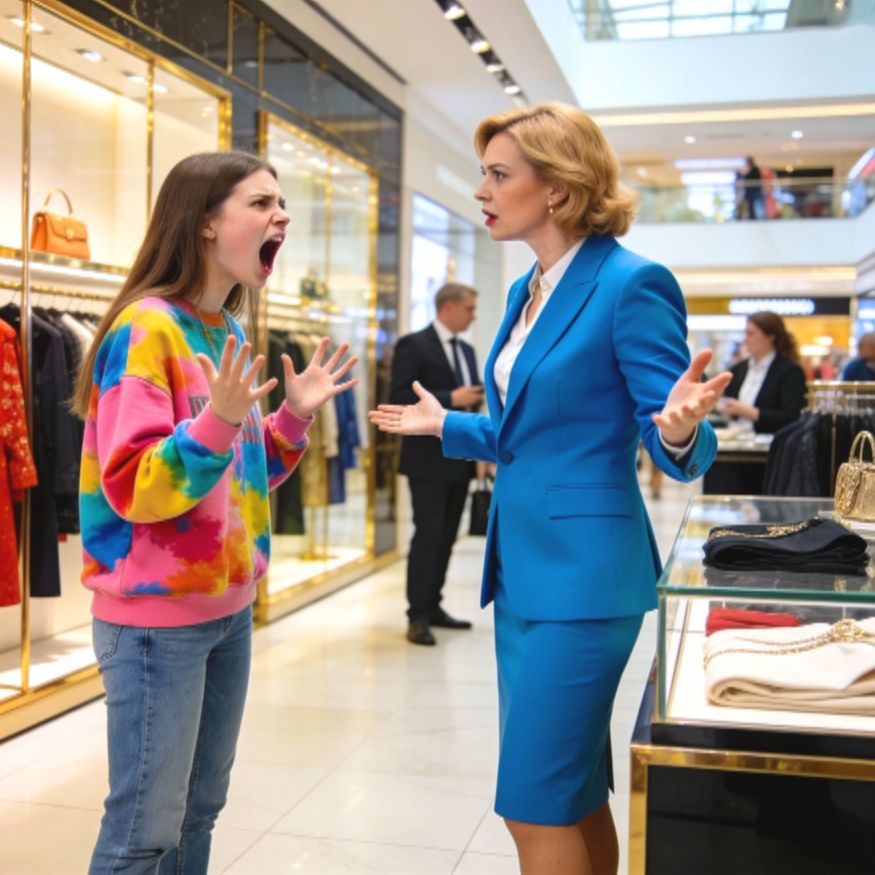 — У папы есть деньги! — голос Кристины становился всё громче, и другие покупатели начали оборачиваться. — Он же директор! Он может себе позволить купить дочери нормальную одежду!