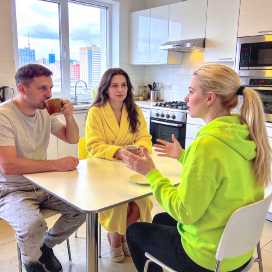 Повисла тишина. Таня медленно опустила чашку на стол. Дима застыл с кофейником в руке.